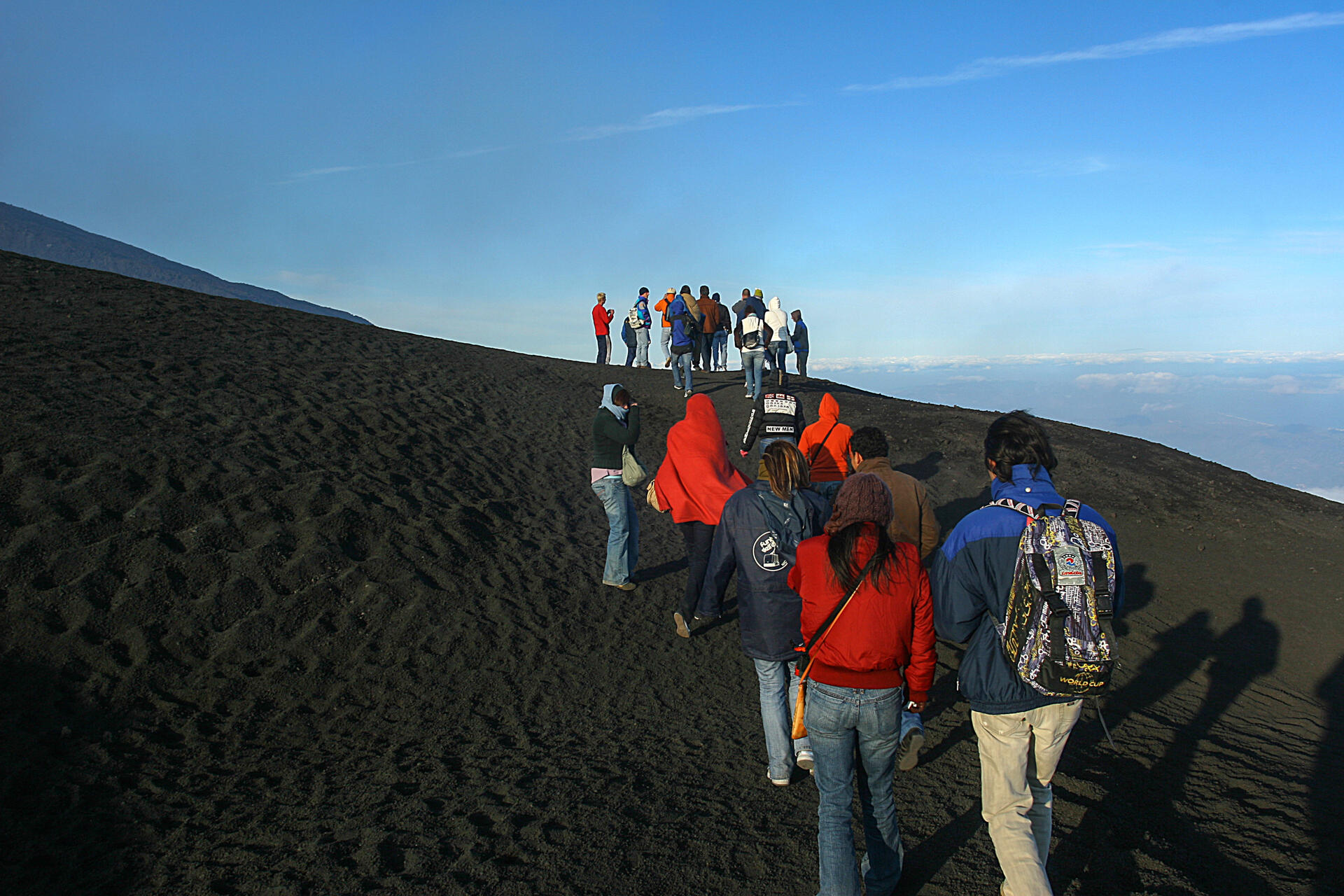 La scalata ha inizio nel territorio di Linguaglossa, tra pini larici, splendide farfalle e milioni di coccinelle che ogni anno si svegliano dal letargo invernale tra le rocce del vulcano. Uno spettacolo molto studiato da entomologi e biologi.