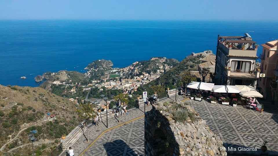 Se con un solo colpo d’occhio riesci a scorgere contemporaneamente la costa ionica, il monumentale Etna, il golfo di Giardini-Naxos, il Capo di S.Alessio, lo stretto di Messina e le coste calabre, o sei su Google Maps o ti trovi a Castelmola.