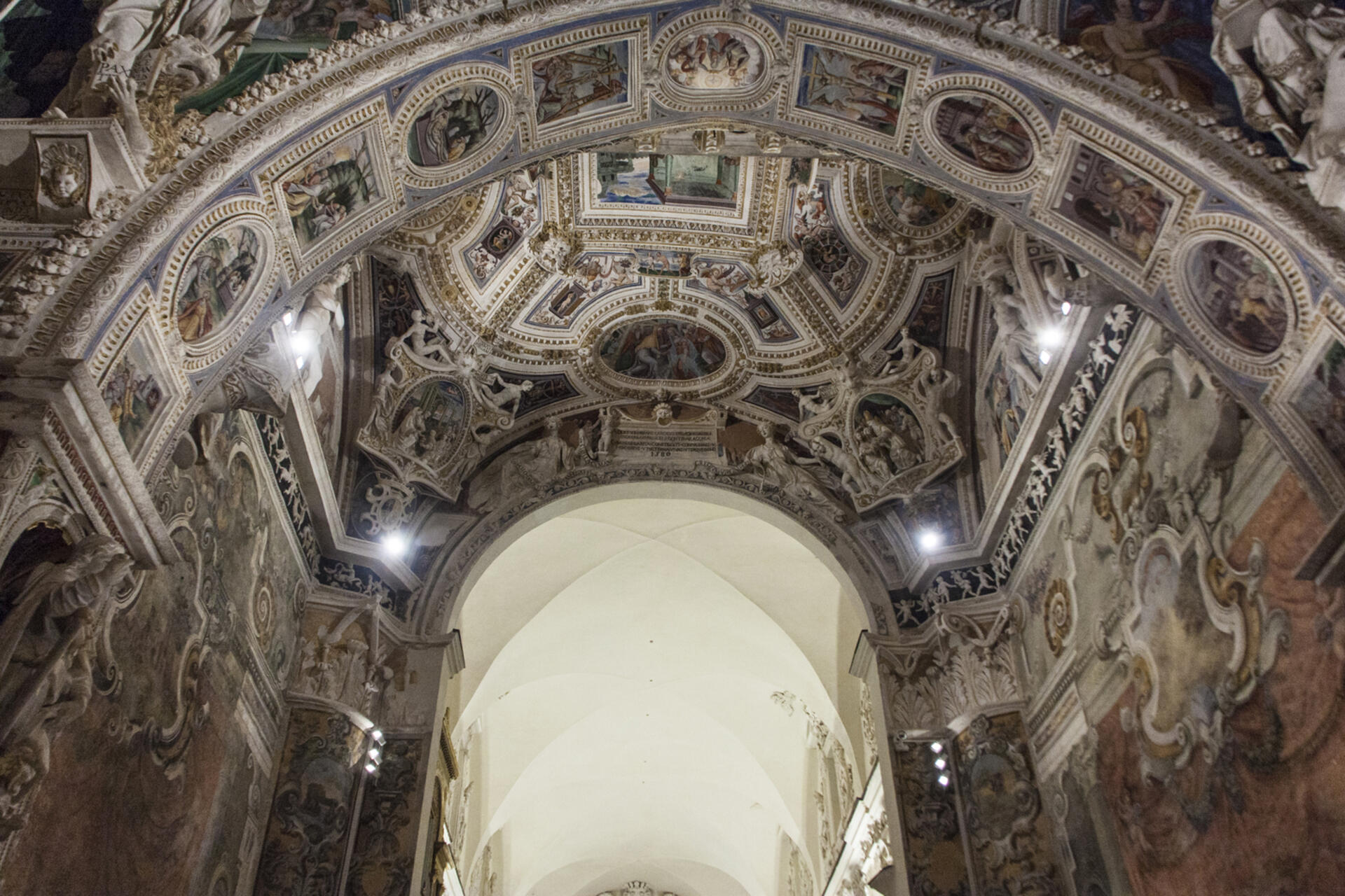 Un capolavoro di stucchi sovrasta l’arco d’ingresso alla cappella del coro: è l’albero di Jesse, che nell’iconografia cristiana testimonia la genealogia di Gesù.