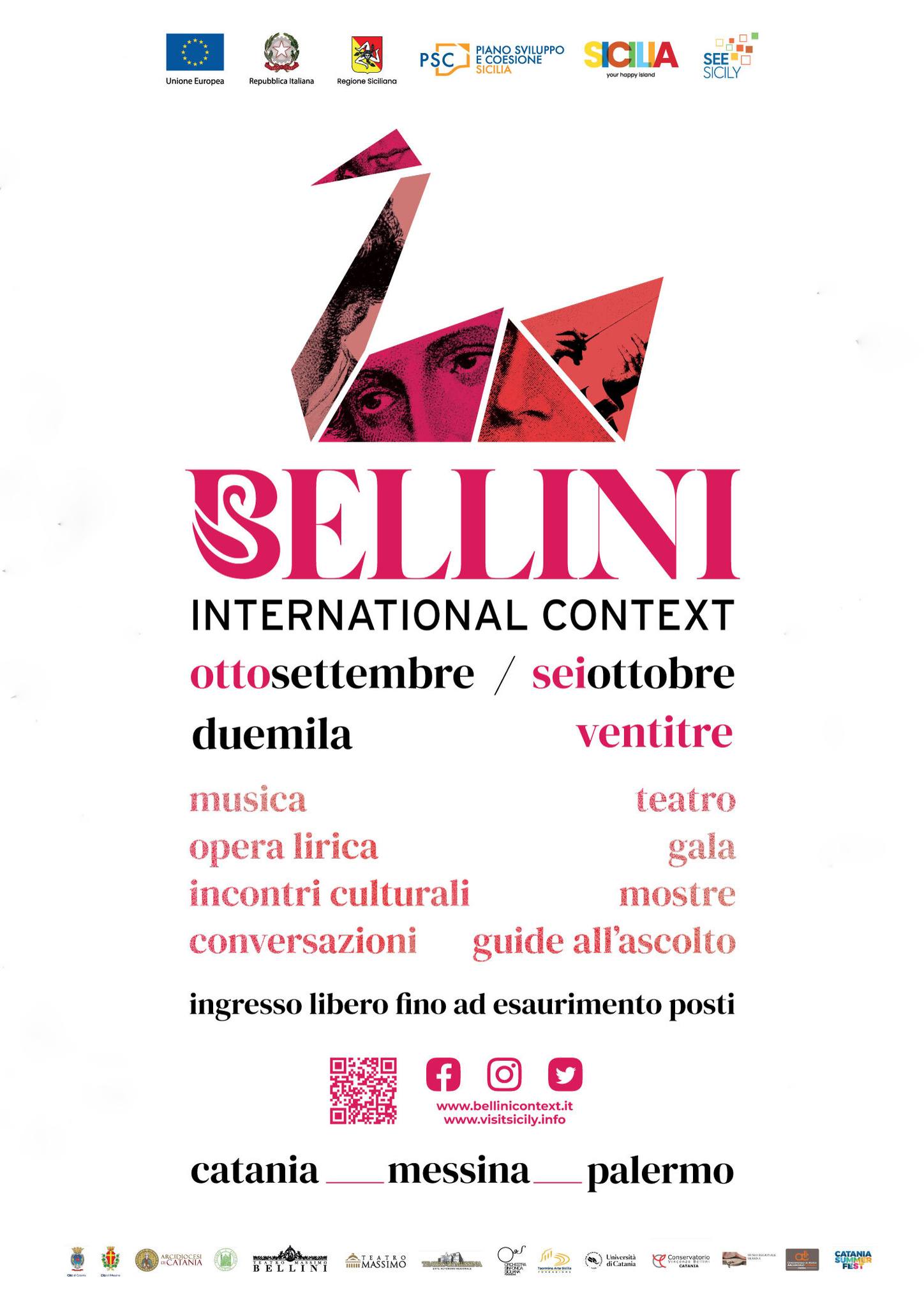 The event promoted by Sicilian Region is organized in synergy with the main cultural institutions of the island: the Teatro Massimo Bellini in Catania, the Theater of Messina, the Teatro Massimo Palermo, the Foundation Sicilian Symphony Orchestra, the Archdiocese of Catania, the University of Catania, Taormina Arte Sicilia Foundation, the “Vincenzo Bellini” Conservatory of Catania and the “A. Corelli” Conservatory of Messina.
