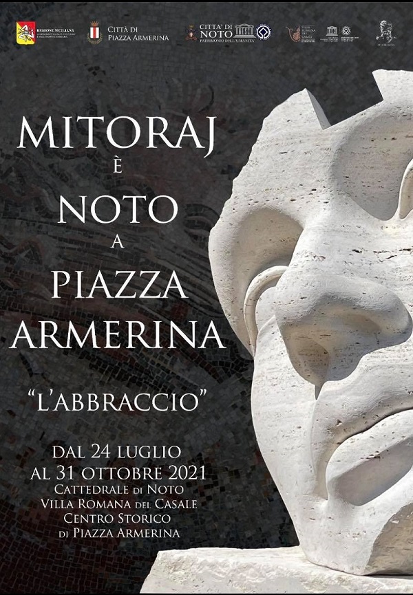 L’Abbraccio, an exhibition by Igor Mitoraj, from 24 July to 31 October 2022 with some of the most important works of the great artist exhibited for the first time simultaneously in three extraordinary places of art and culture, famous all over the world, such as Noto, Villa Romana del Casale and the historic city of Piazza Armerina.