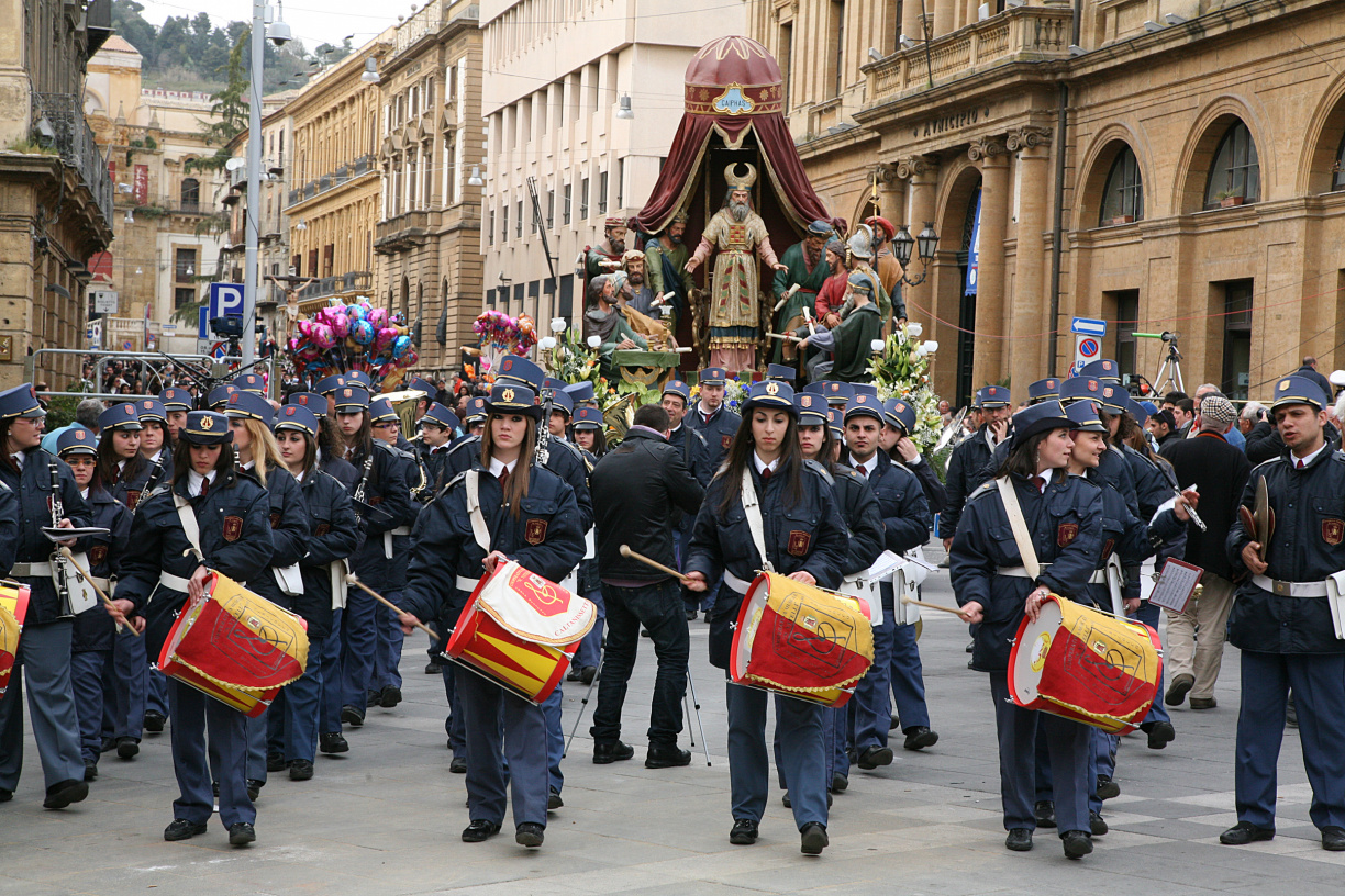 Piazza Garibaldi becomes the scene of the Spartenza, a traditional re-enactment ritual not to be missed during Holy Week in Sicily.