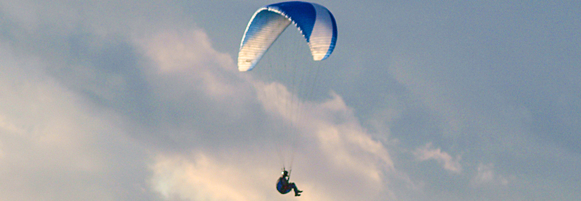¡Este es el vuelo libre más simple y ligero que existe! Diseñado para despegar utilizando el empuje de las piernas del piloto, solo se utiliza la energía del viento y la fuerza de la gravedad para volar. El parapente es un vehículo sin motor, por eso es necesario lanzarse desde cierta altura al no poder despegar en llano. Las emociones del vuelo compensan los temores previos. Se puede volar en tándem en parapente doble con instructores cualificados.