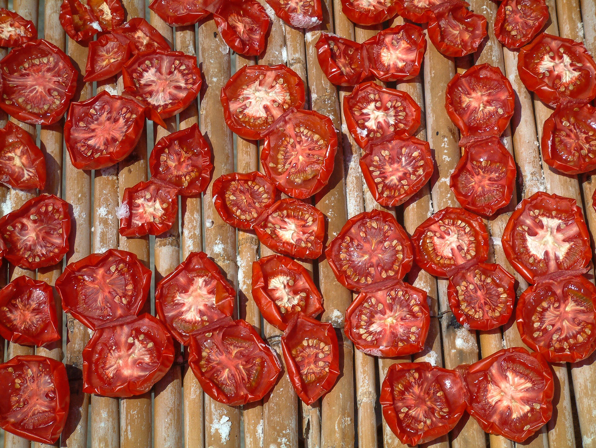 Para obtener un kilo de astrattu, los ingredientes se cuentan con los dedos de una mano: 20 kilos de tomates de especie seca y azucarada (es ideal el tomate siccagno, cultivado sin agua en los terrenos de Madonia), unas cuantas cucharadas de un buen aceite de oliva virgen extra (para «saborear» mejor el tema, continúa aquí tu lectura), algunas hojas anchas de parra, unas cuantas hojas de laurel secas y la sal que se quiera.