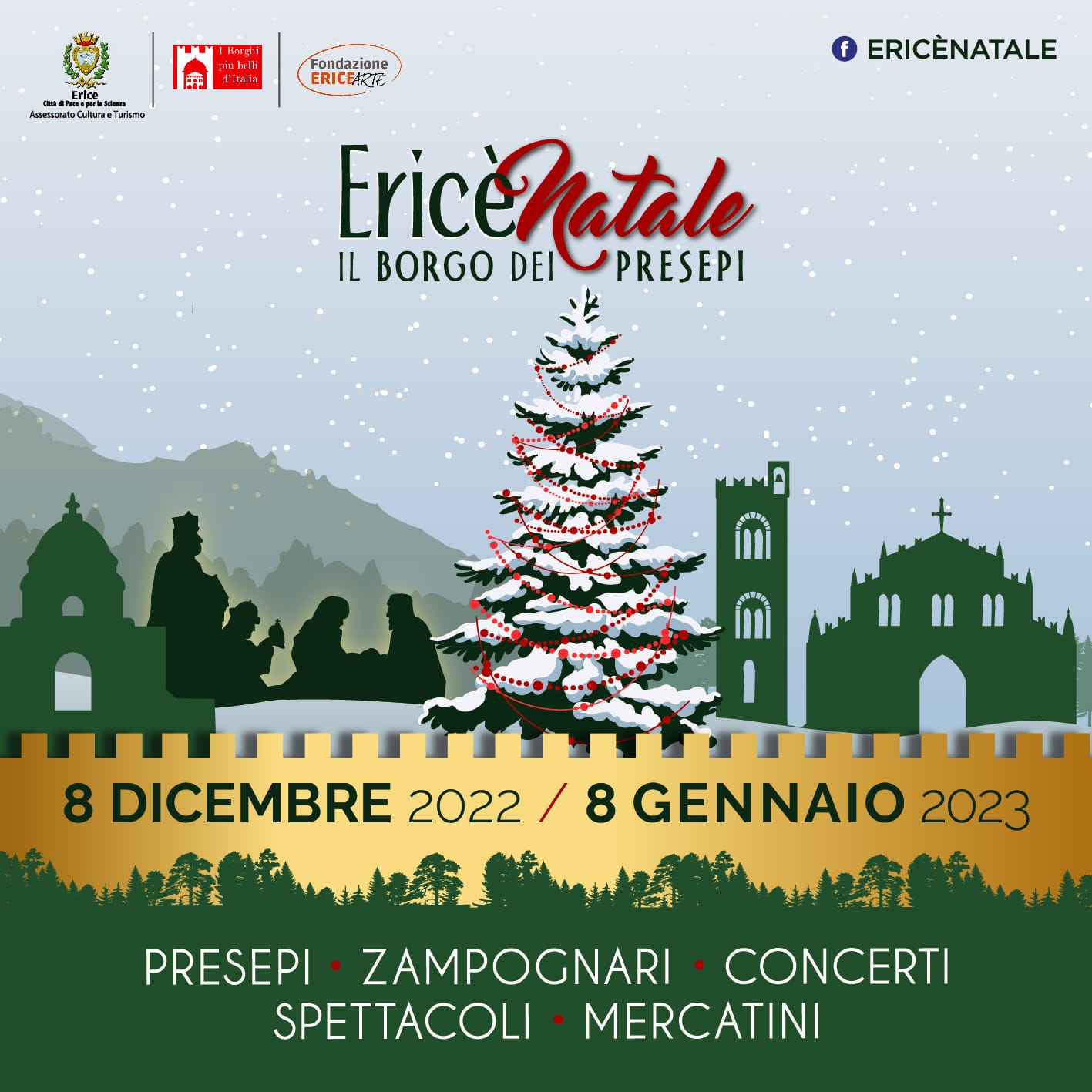 Nel mese di Natale, ad Erice, prende vita EricèNatale. L’antica tradizione dei presepi, l’evocativo suono delle zampogne, la qualità degli spettacoli, i mercatini e la casa di Babbo Natale, si fondono in questo appuntamento