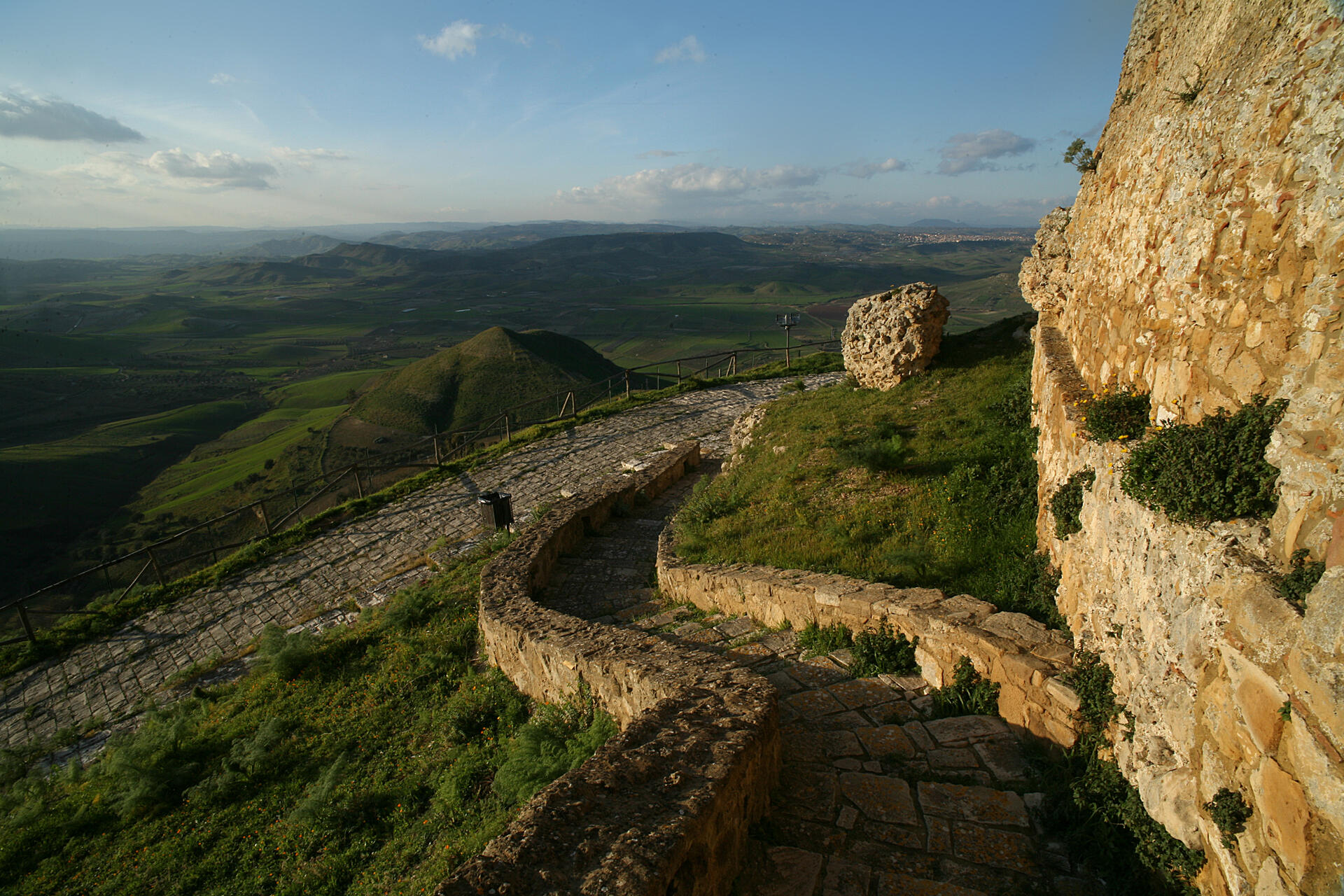 A 50 km de Mazzarino, en descendant déjà sur le territoire de la Province de Catane, on passe par la ville de Caltagirone. Dans cette ville magnifique on peut certainement se décharger les jambes en montant le célèbre Escalier de Santa Maria del Monte, long de 130 mètres avec ses 142 marches entièrement décorées de céramiques colorées typiques de la région.