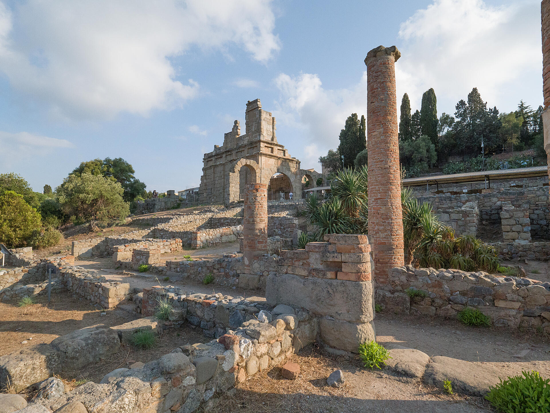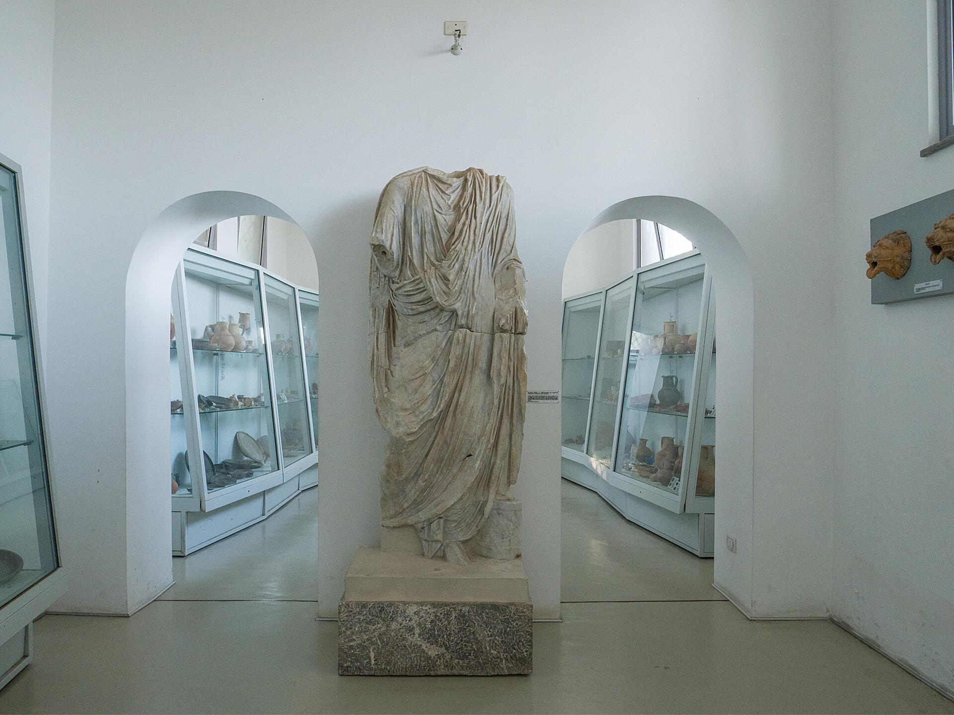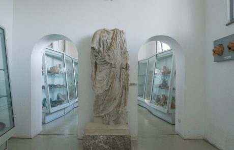 En se déplaçant encore de 16 km vers l’est, on arrive à la zone archéologique de Capo d’Orlando, à Contrada Bagnoli. On y trouve une station thermale datant du IIIe siècle après J.-C., dont le sol présente des mosaïques aux décorations géométriques et des murs plâtrés dans le tepidarium. En poursuivant sur une autre courte distance (21 km), dans cette bande de terre serrée par les montagnes, nous nous dirigeons cette fois vers les montagnes pour arriver à Gioiosa Guardia. La zone archéologique fait référence à un centre hellénisé indigène occupant une position stratégique exceptionnelle. La phase grecque est mieux documentée jusqu’à la destruction violente de l’établissement à la fin du Ve siècle avant J.-C., soit par un tremblement de terre, soit par la politique expansionniste de Carthage. Au XIe siècle, après des siècles d’abandon, le territoire est devenu un fief du couvent bénédictin de Patti et au XVIIIe siècle a été construite l’église de San Francesco, dont les ruines sont encore visibles aujourd’hui. Revenons maintenant sur la côte, toujours en direction de l’est, et arrêtons-nous à la Villa Romaine de Patti Marina, mise au jour lors des fouilles pour la construction de l’auto-route Palerme-Messine. Le noyau principal de la villa est basé sur un grand péristyle quadrangulaire autour duquel se développent des pièces aux fonctions différentes. Au sud du péristyle, une grande salle triapside dénote son importance par la présence de mosaïques au sol.