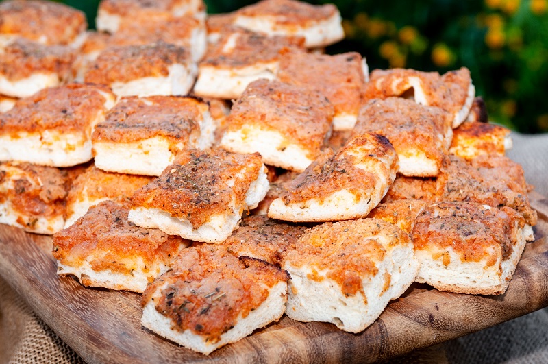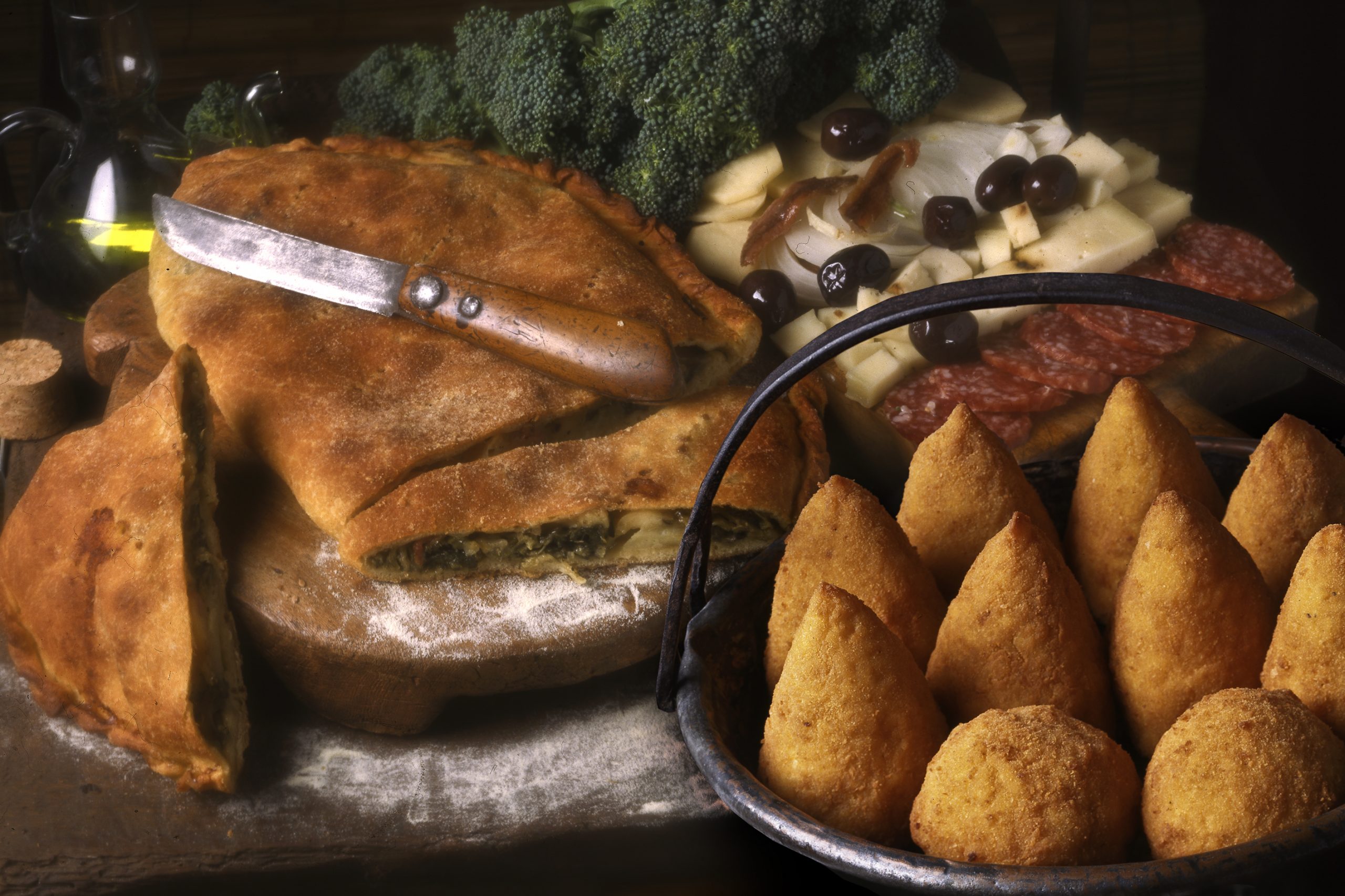 Altro capitolo è quello delle focacce semplici o ripiene, diffuse in tutta l’isola con nomi, impasti e ripieni diversi: il cudduruni, le scacce, le scacciate, la focaccia, ‘nfriulati, imbriulati e i pitoni, con ripieni di ricotta, formaggio tuma, olive e acciughe, verdure e carne. Palermo è invece la patria dello sfincione, una focaccia alta e morbida condita con una salsa a base di pomodoro, acciughe, cipolla e caciocavallo.