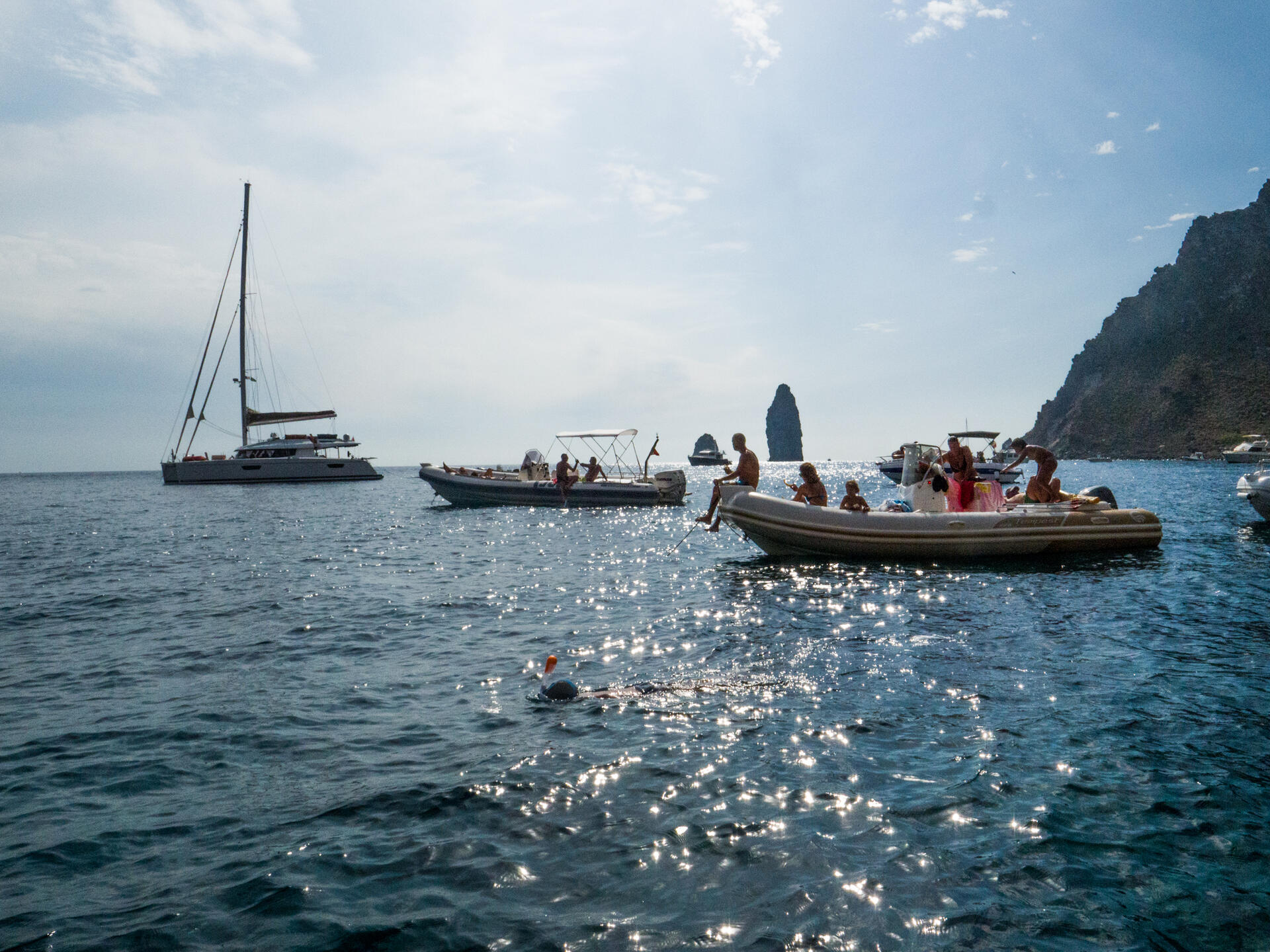 Nelle Eolie, a Lipari, a Punta Castagna, tra il blu del mare e il bianco della pomice contrasti e sfumature da lasciare senza fiato, vivacissimi fondali di pietra vicino alla Sciara di Fuoco a Stromboli, con miriadi di spugne e gorgonie tra le nere rocce del vulcano; esploriamo il cratere sommerso davanti a Pollara, a Salina, o un’altra Grotta dei Gamberi a Filicudi. A Panarea un’intensa attività di fumarole sottomarine la vediamo semplicemente con lo snorkeling. Questo fenomeno è dovuto alla fuoriuscita di gas vulcanici che premono sotto la crosta terrestre. In tutte le zone vulcaniche e nelle Isole Eolie ci sono queste affascinanti fumarole.