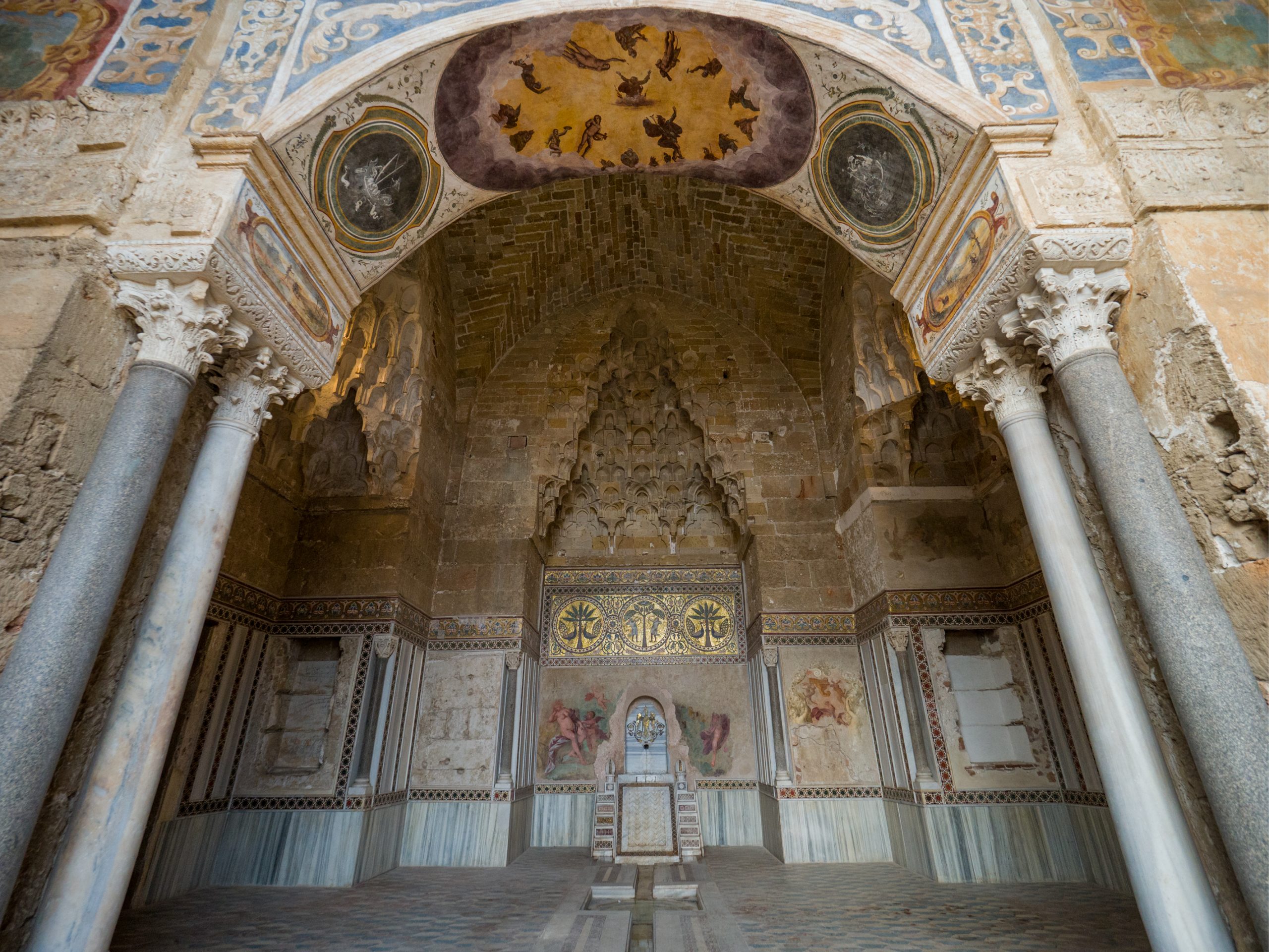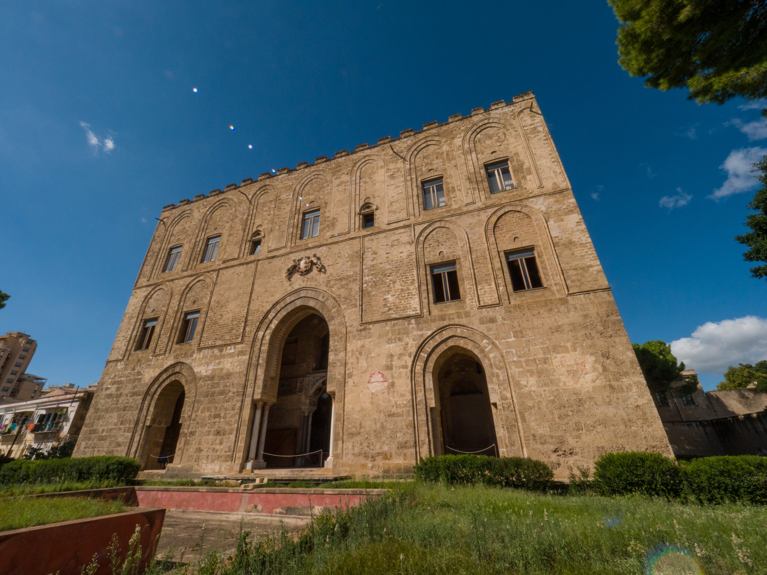 Rimettiamoci in cammino ed entriamo nel cuore del capoluogo di regione: Palermo. Ebbene sì, perché i castelli non sono tutti arroccati su impervi pendii. Nel novero dei castelli siciliani di grandissimo rilievo è anche il Castello della Zisa, un tempo fuori dal centro abitato di Palermo (oggi nell’omonimo quartiere). Fu proprio il Re Guglielmo I “Il Malo” (ancora lui) a incominciarne i lavori nel 1165, poi portati a termine dal suo successore Guglielmo II (detto “Il Buono”). Il Palazzo fu concepito come dimora estiva dei re e rappresenta uno dei migliori esempi del connubio tra arte normanna e ingegneria araba (riguardante quest’ultima, soprattutto i sistemi di ricambio d’aria negli ambienti). Non a caso l’edificio è rivolto verso nord-est, cioè verso il mare per godere al meglio delle brezze più temperate. Questi venti inoltre diventavano umidi al passaggio sopra la grande peschiera antistante il palazzo, costruita appositamente per dare maggiore frescura alle sale interne. Entrate e perdetevi tra una delle tappe più significative dell’itinerario arabo normanno, riconosciuto dall’Unesco come Patrimonio dell’umanità.