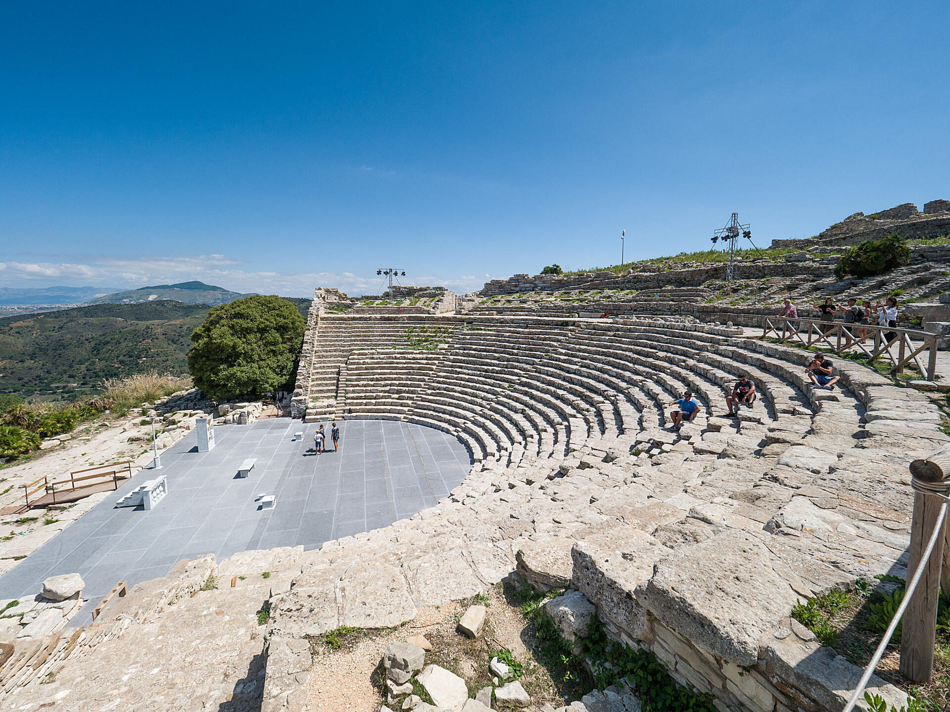 Partiamo dal Parco archeologico di Segesta. Siamo nell’area archeologica omonima, in Contrada Barbaro a Calatafimi. Segesta, le cui abitazioni più antiche risalgono al VI sec a. C., ebbe tra il II e il I sec. a. C. un grande periodo di prosperità e la sua storia continuò anche in epoca bizantina, poi musulmana (vi è un villaggio con moschea), e ancora normanno-sveva (insediamento con castello sommitale).