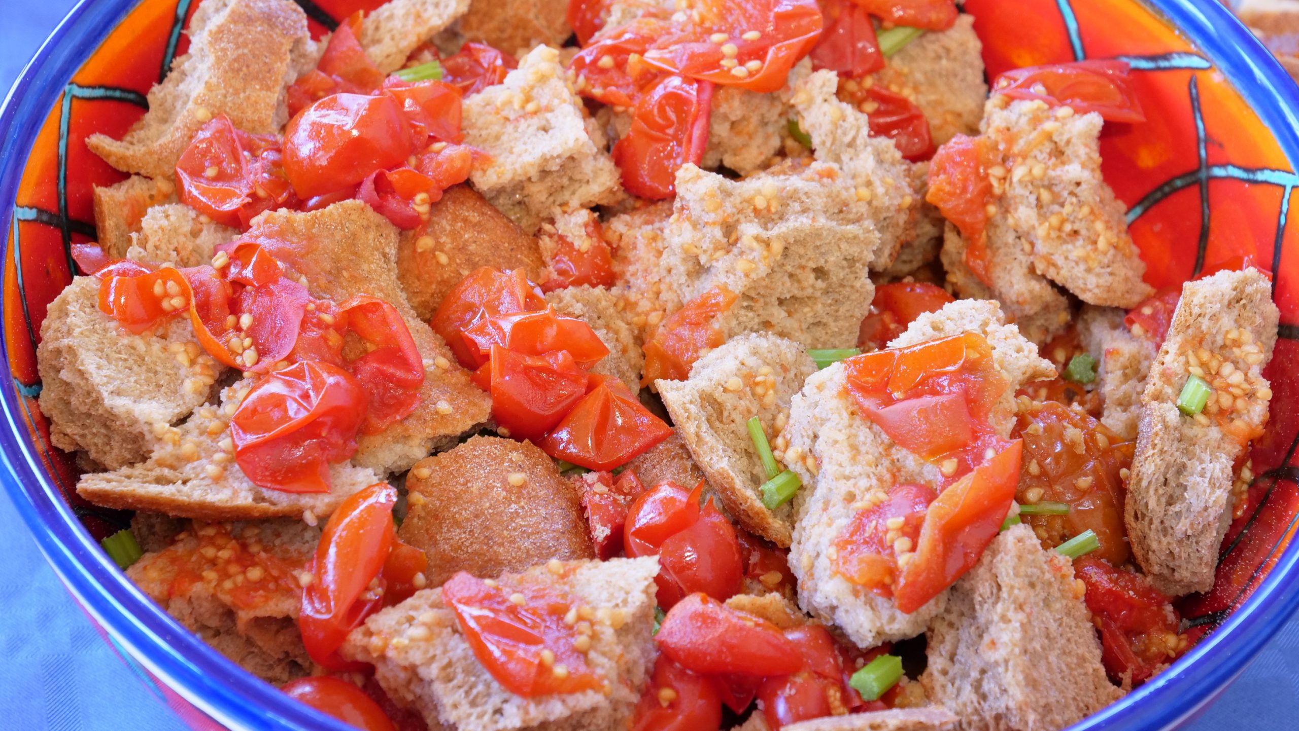 Risaliamo ora verso il centro dell’isola. Dopo una breve sosta per assaggiare le preparazioni a base di cipolla di Giarratana, è d’obbligo uno spuntino nell’ennese con piacentino ennese (formaggio di pecora con aggiunta di zafferano e pepe nero, che lo rendono caratteristicamente giallo e piccantino) e pane del Dittaino (un pane DOP ottenuto da semole di grani duri antichi). In quest’area centrale, tra Enna e Caltanissetta, tipica è poi la frascatula, una sorta di polenta tutta nostrana: una preparazione a base di verdure (soprattutto erbe spontanee: cicoria, borragine, bietole, asparagu, finocchietto, amarelli, senape) e farina. Da provare ovviamente, come si suol fare con tutte le polente avanzate, anche nella versione fritta!