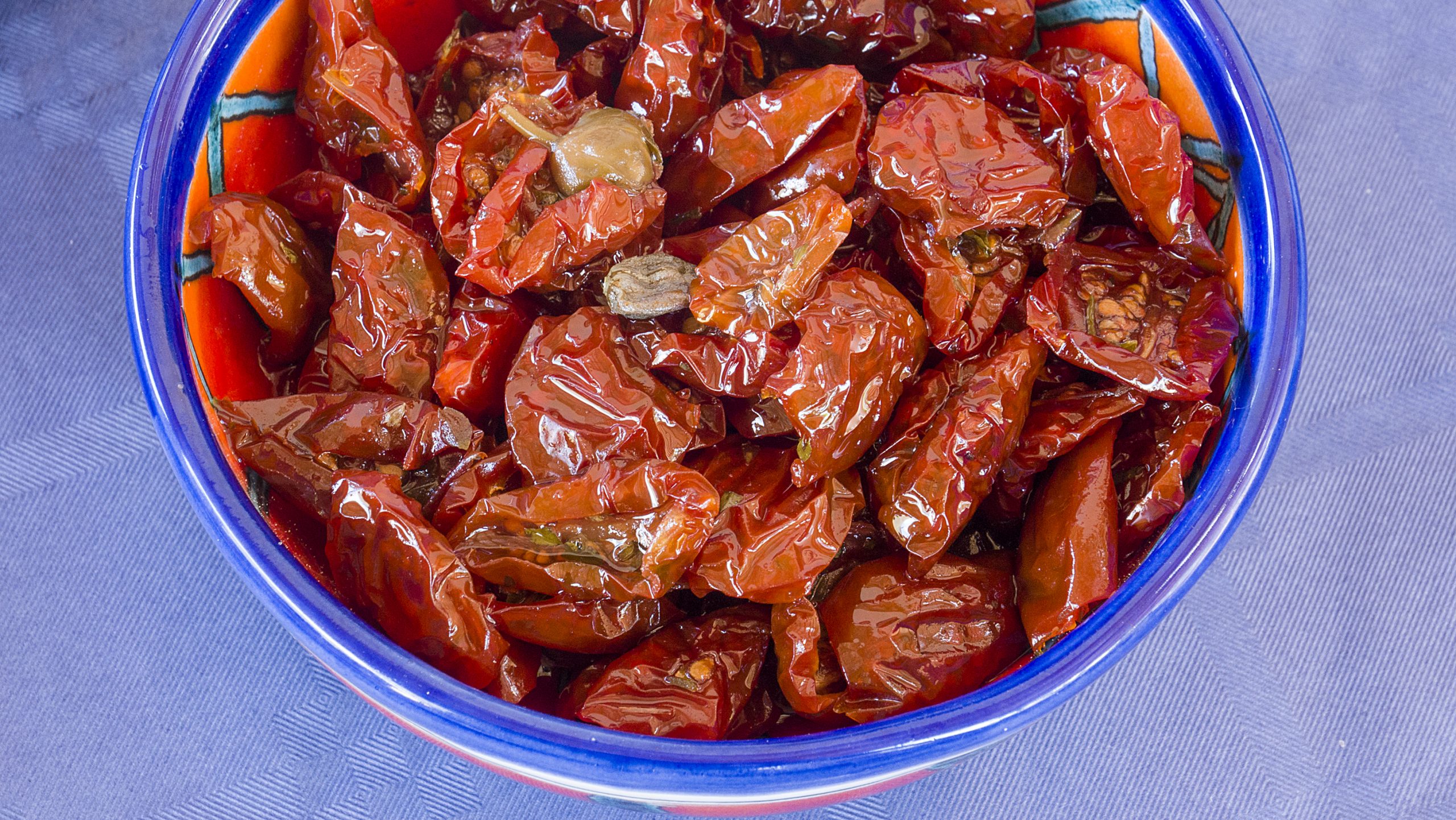 Arriviamo quindi nella punta occidentale della Sicilia, nel trapanese. Qui i cous cous la fanno da padroni (ovviamente chiedetelo vegetariano!), insieme alle busiate (pasta filiforme arricciata) con pesto alla trapanese: un pesto che deriva da quello genovese (i genovesi lo portavano con sé nei loro viaggi e nelle loro soste nei porti siciliani), che i trapanesi hanno modificato aggiungendo i prodotti tipici del territorio. È bastato unire basilico, pomodori, mandorle, pecorino, aglio rosso di Nubia (presidio slow food) e…voilà: il pranzo è servito. Anche in quest’area (e anche a Favignana) si preparano le frascatole, ma nonostante il nome sia uguale a quelle del centro dell’isola, la ricetta è diversa! È un derivato del cous cous e la tradizione vuole che nasca nelle cucine dei nobili: i poveri raccoglievano gli scarti di cous cous mal lavorato perché troppo grossolano e lo abbinavano alle verdure. Oggi vengono preparate lavorando intenzionalmente la semola per ottenere una resa più grossolana, condita poi con sugo di verdure. Se siete invece nell’assolata Pantelleria e volete un piatto fresco chiedete della salsa all’ammogghiu, un pesto di pomodoro con aglio, peperoncino e basilico. Che sia sulla pasta, sulle bruschette, o per accompagnare i fritti, vi stupirà per la sua bontà, la sua freschezza e la sua semplicità!