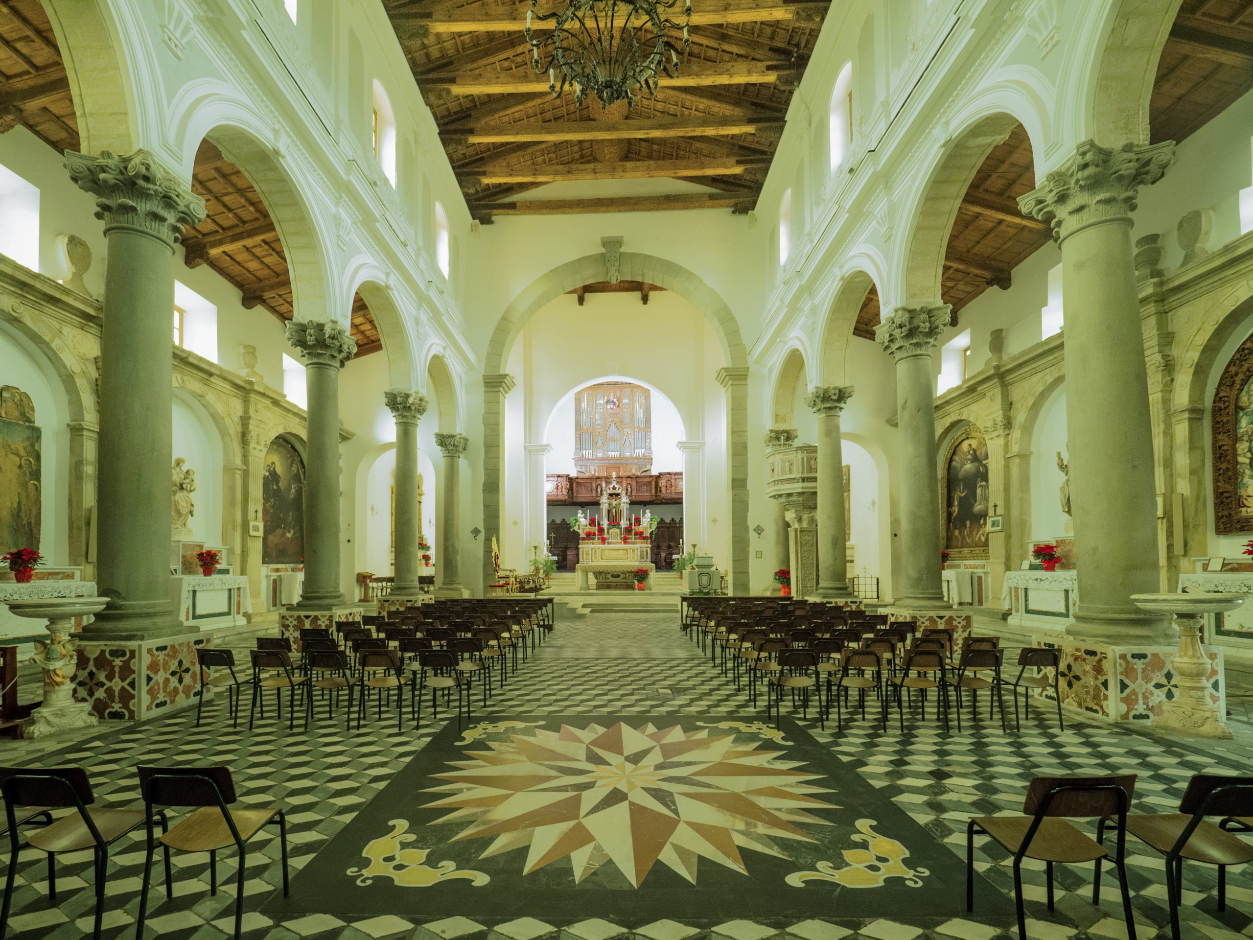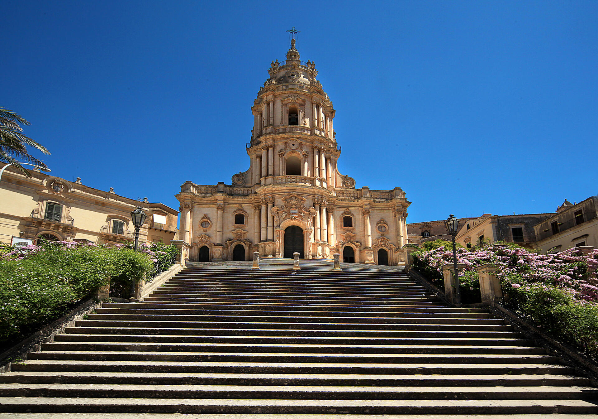 Il Duomo di San Giorgio, Chiesa Madre di Modica e inserito nella Lista Mondiale dei Beni dell’Umanità dell’UNESCO, è il monumentale simbolo iconico del Barocco siciliano. Prodigioso per la sua scenografica architettura, il Duomo custodisce al suo interno una meridiana solare progettata nel 1895 dal matematico Armando Perini. Attraverso il foro gnomonico posto in alto sulla destra dell’edificio, filtra il raggio solare che segnala il mezzogiorno sulla linea Nord-Sud tracciata sul pavimento dinanzi l’altare maggiore.