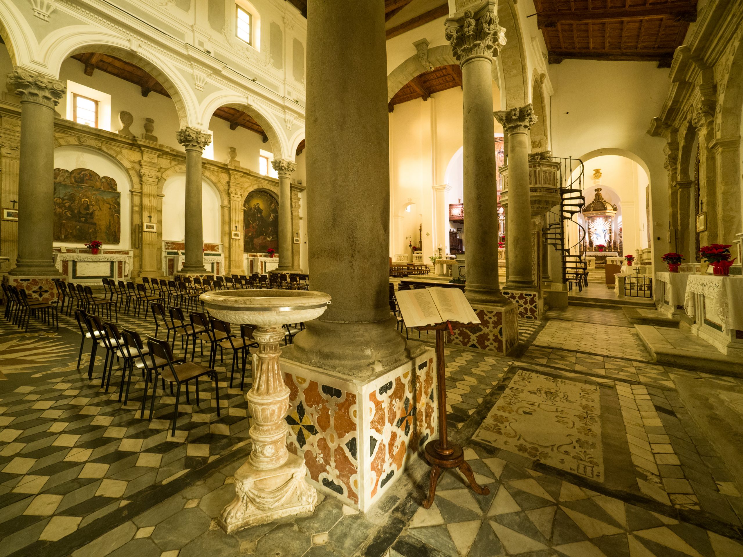 Ancora più essenziale è la meridiana incisa sul pavimento del Duomo di Castroreale, realizzata dal docente di lettere classiche Nicola Perroni Basquez nel 1854. Le meridiane che si trovano all’interno delle chiese sono definite “a camera oscura” (o “a foro”) proprio perché sulla pavimentazione si forma l’immagine del sole.