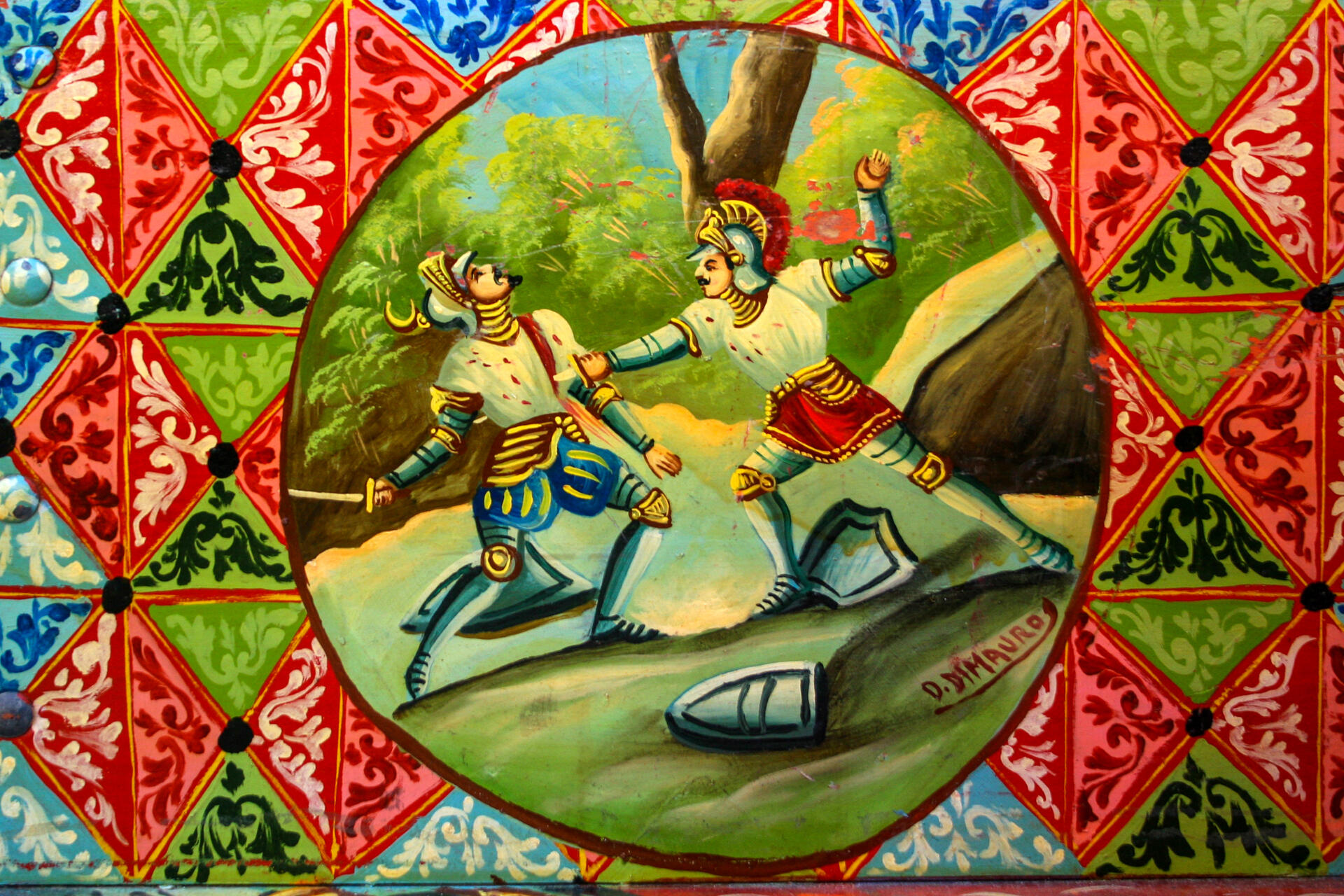 È la rappresentazione teatrale dei poemi della letteratura francese medievale della Chanson de Roland o dell’Orlando Furioso, degli scontri tra i cavalieri e i mori, in cui i pupi sono l’espressione e il simbolo del desiderio di riscatto e di giustizia di una classe sociale.