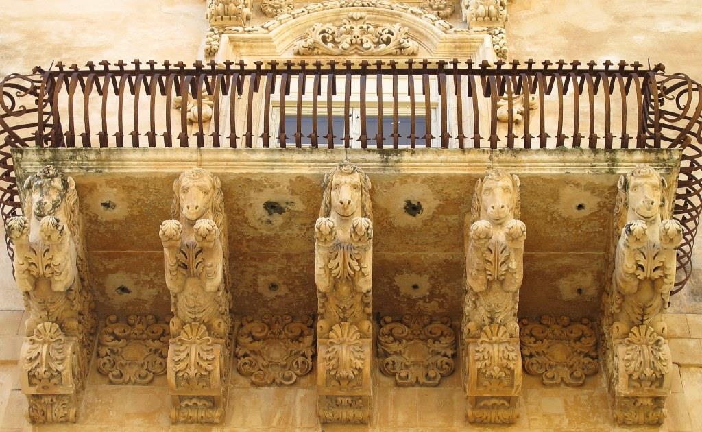 Continuando il percorso, sulla destra imboccate Via Nicolaci, famosa per l’Infiorata, che si conclude con la bella facciata concava, chiusa tra due campanili, della Chiesa di Montevergine. Saltano agli occhi, sulla sinistra, i panciuti balconi di Palazzo Nicolaci Villadorata che rappresentano l’espressione massima del barocco netino. Le mensole che li reggono sono decorate con forme di animali tra volute ed arabeschi.