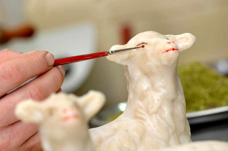 I Picureddi, facili da trovare in tutta la regione, sono invece pecorelle di pasta reale sdraiate su un fianco e poste sopra un prato verde disseminato di confettini coloratissimi.