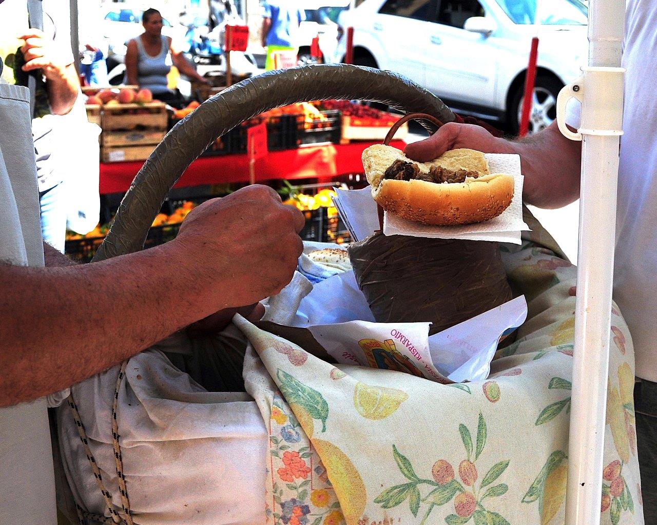 Via Plebiscito è il posto giusto dove mangiare l’altra specialità di Catania, il panino farcito con carne di cavallo cotta alla brace, condito con olio, sale e prezzemolo.